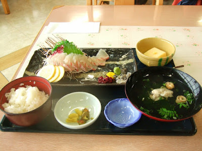 多々羅大橋の手前にある道の駅にて。せっかくの島なので、一般に出回らないという鮮魚料理「マハタの薄造り御膳」を選択。癖のない淡泊な味わいが、疲れた体に染みますね。なかなか歯ごたえのある身です。