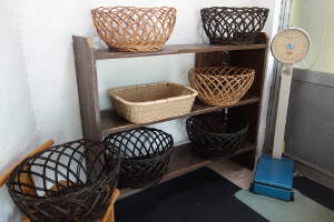 喫茶コーナーでは、創作小物が並べられ品の良い様子。