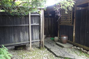 露天風呂は木の板で仕切って2層式になっており、源泉投入口側は熱くて透明な湯、奥側は温めで濁り湯になっています。源泉が時間が経つに従って色が変わっていくのが良くわかる配分です。さすが、完全源泉掛け流し。